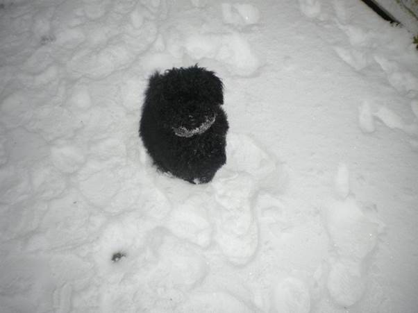 Meanwhile, here’s a picture of Marley (Hampatong Halloween at Kistelek to use her posh name) in the snow.